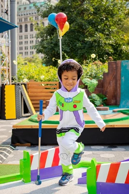 The toys are back and ready to have another unforgettable laugh-out-loud adventure, so get dressed! In this Toy Story Buzz Lightyear Coverall join space ranger Buzz Lightyear and his friends Sheriff Woody, Jessie the cowgirl, the green Aliens, Mr. and Mrs. Potato Head, Slinky Dog, Hamm the piggy bank, Bo-Peep, and the lovable toy horse Bullseye on their latest journey out of the toy box, to infinity and beyond. With your child on their side, these faithful toys from the iconic and groundbreaking Disney Pixar Toy Story films will be singing “You’ve Got a Friend in Me” in no time. Your little one will look so adorable and cool in this cute and stylish long sleeve one-piece coverall featuring their favorite animated movies that they’ll always love wearing it.