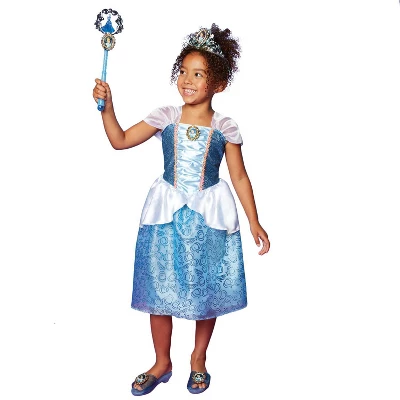 Step into the story of Disney Princess Cinderella with this complete Disney Princess Cinderella Accessory Set! It’s the perfect set to complement your Cinderella dress and have you feeling like a true Disney Princess. The set includes a gorgeous jeweled tiara, a pair of sparkling shoes, and a fun wand, each with a Disney Princess character cameo.