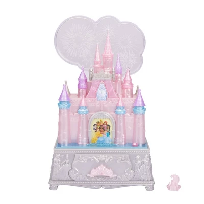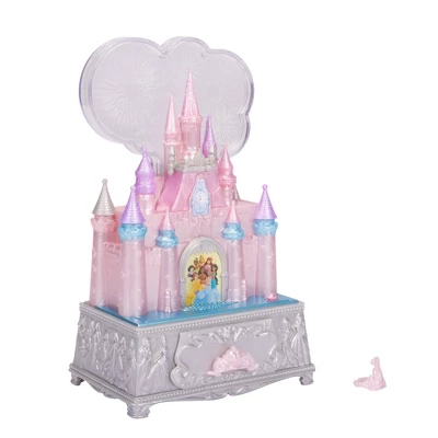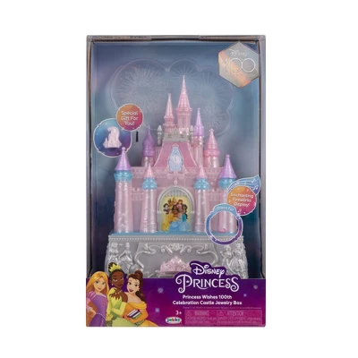 Store special trinkets and recreate treasured memories with the Disney Princess Wishes 100th Celebration Castle Jewelry Box. Inspired by the magic of Disney, this fairy tale castle jewelry box plays “A Dream Is a Wish Your Heart Makes” while the castle doorway lights up to showcase your favorite Disney Princess characters and an enchanting fireworks display completes the magical moment. Comes with a keepsake castle ring gift!