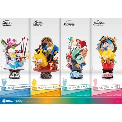 Disney Animation is always able to touch our hearts with brilliant stories and stunning images. Beast Kingdom is proud to take you back to the most beautiful and moving moments of these romantic stories through our Disney Princess Series, part of our D-select series of the Exquisite Scenes collection.In Snow White and the Seven Dwarfs, we see two sides of the same apple – the Princess on the good side, and the Evil Queen on the bad side. This statue perfectly integrates the two sides of good and evil that are found in the fairytale. The characters, animals, and backgrounds have been arranged carefully, and the meticulous and detailed painting shows a scene with both right and wrong sides. The statue gives you the happy and dancing princess, as well as the dark and sinister Evil Queen and her loyal servant the Magic Mirror.
